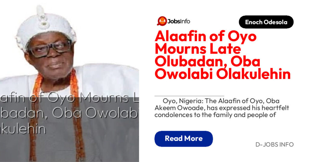 Oyo, Nigeria: The Alaafin of Oyo, Oba Akeem Owoade, has expressed his heartfelt condolences to the family and people of Ibadanland following the passing of the Olubadan, Oba Owolabi Olakulehin, who died in the early hours of Monday.