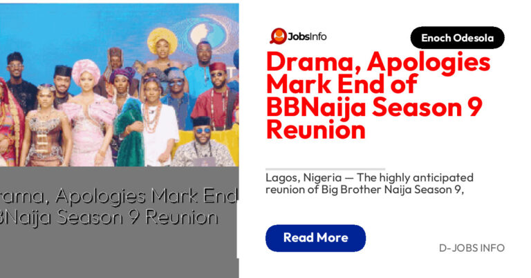 Lagos, Nigeria — The highly anticipated reunion of Big Brother Naija Season 9, themed No Loose Guard, wrapped up with drama, revelations, and heartfelt apologies, setting the stage for an even more exciting Season 10 expected later this month. In a press release issued today by Multichoice Nigeria, organizers highlighted that the reunion brought back […]