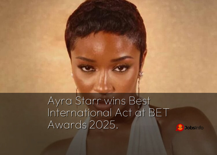 Los Angeles, USA — Nigerian music sensation Ayra Starr has clinched the prestigious Best International Act award at the 2025 BET Awards, held in Los Angeles on Sunday night.