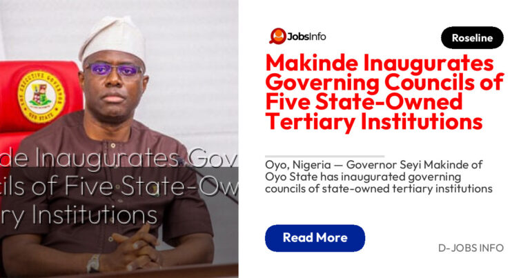 Oyo, Nigeria — Governor Seyi Makinde of Oyo State has inaugurated governing councils of state-owned tertiary institutions on Friday. The event was attended by the Deputy Governor, Barrister Bayo Lawal; Speaker of the House of Assembly, Hon. Adebo Ogundoyin; the Chief Judge of Oyo State, represented by Justice K.A. Adedokun; and a former Deputy Governor […]