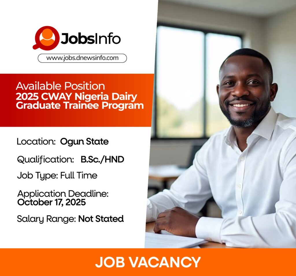 CWAY Foods Nigeria invites applications from enthusiastic and passionate graduates for its 2025 Dairy Graduate Trainee Program.