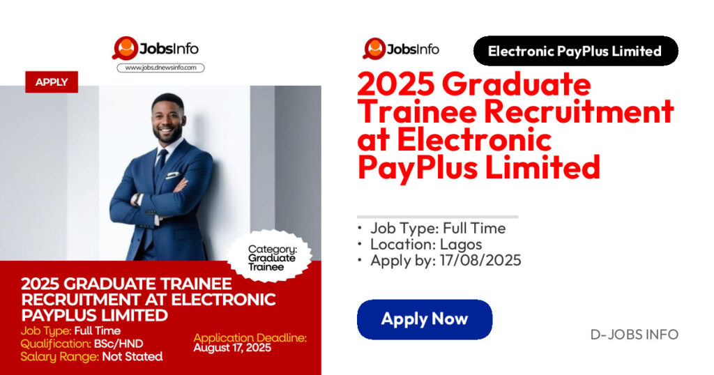 As part of its growth strategy, Electronic PayPlus is inviting applications from energetic and passionate young graduates for its 2025 Graduate Trainee Program. This opportunity is ideal for fresh graduates ready to kickstart their careers in a dynamic and fast-paced tech-driven environment.