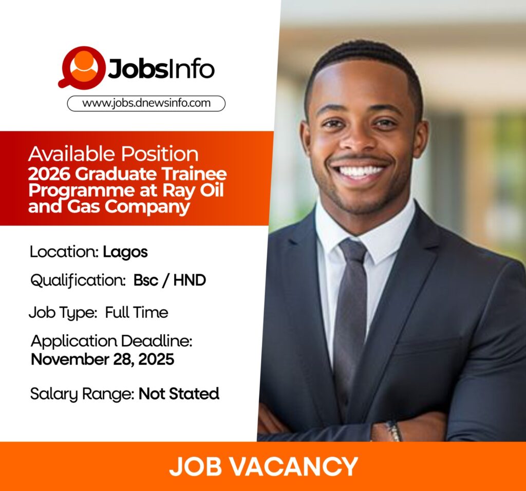 Ray Oil and Gas invites applications from qualified and motivated graduates for its 2026 Graduate Trainee Program. Successful candidates will participate in structured training sessions, mentorship programs, and fieldwork aimed at developing technical and managerial skills within the petroleum sector.