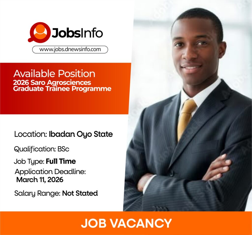 The Saro Agrosciences Graduate Trainee Program offers an opportunity for young finance graduates to build a solid career while contributing to agricultural development and supporting Nigerian farmers.