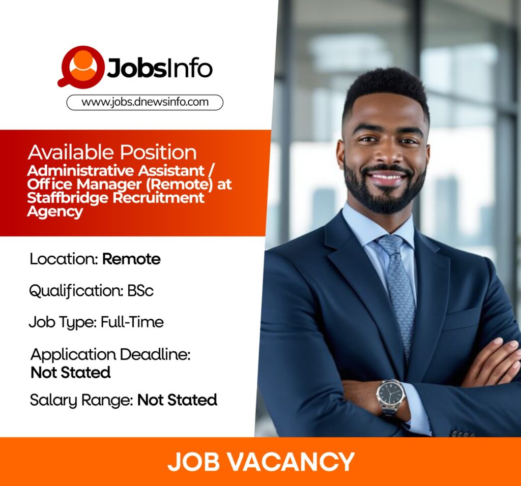Staffbridge Recruitment Agency is seeking a highly organised and proactive Administrative Assistant / Office Manager to support daily operations and client-facing activities in a fully remote capacity.