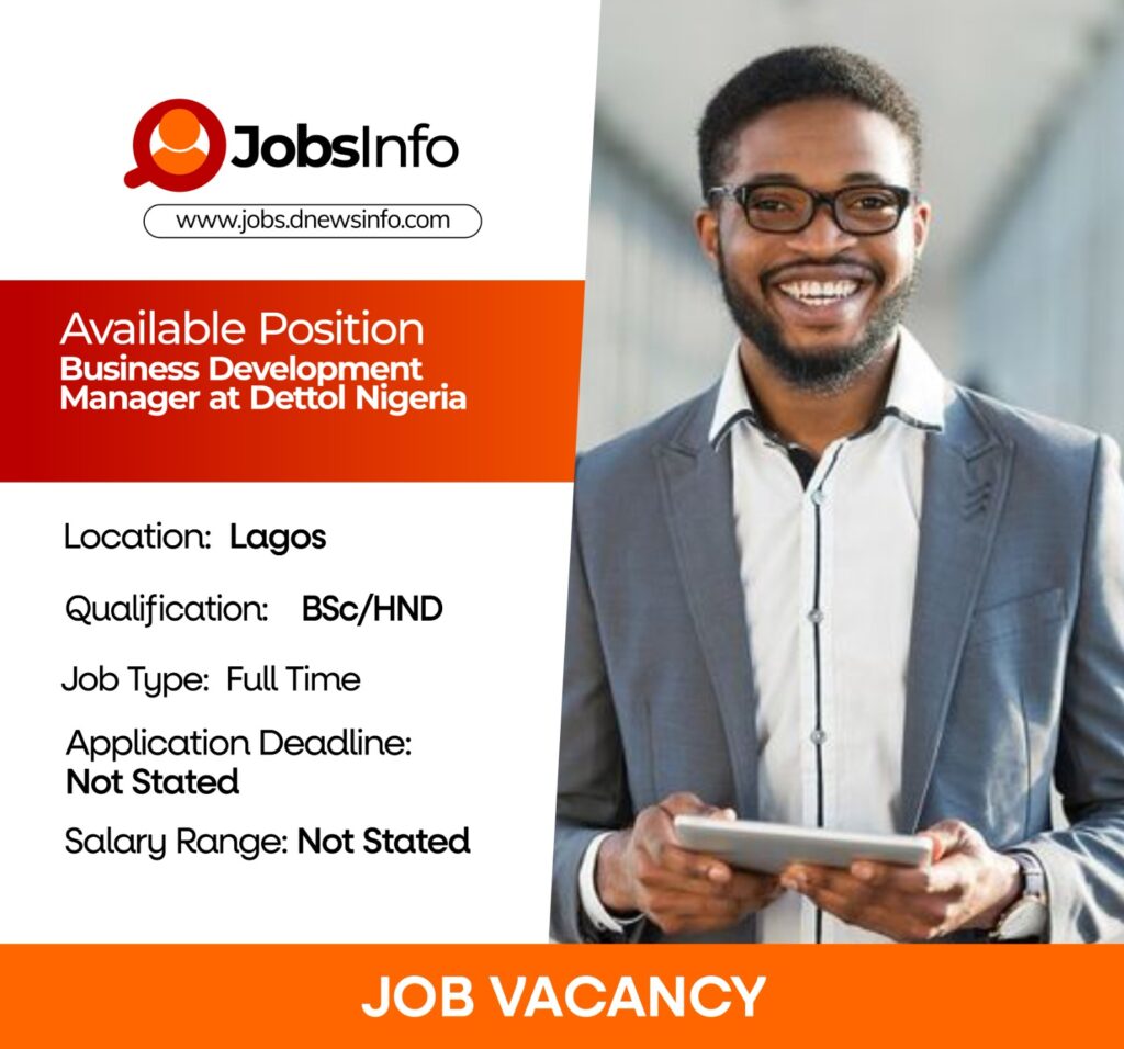 Dettol Nigeria is seeking a highly driven Business Development Manager to lead sales performance, market development, and in-store presence across assigned territories. The role requires a strategic sales professional who can drive distribution, build strong relationships with distributors, monitor trade activities, and identify new business opportunities.