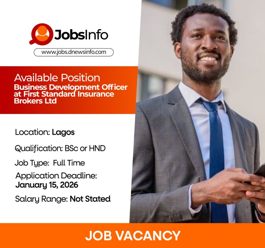 First Standard Insurance Brokers Ltd is seeking a proactive and results-driven Business Development Officer to support business growth across the 20 Local Government Areas in Lagos State. The successful candidate will be responsible for identifying new business opportunities, driving sales, building client relationships, and expanding the company’s insurance portfolio.