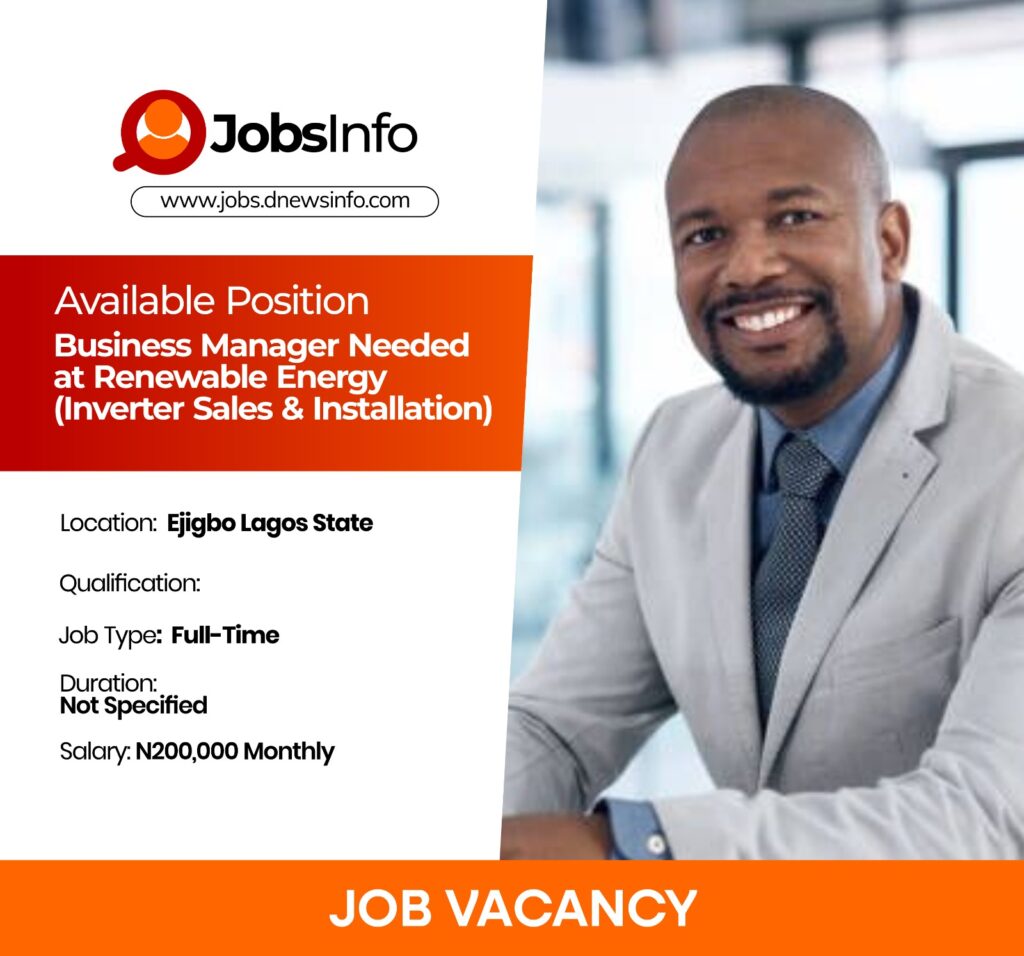 A fast-growing inverter sales & installation company is urgently seeking a Business Manager to oversee operations, drive growth, and ensure excellent customer service.