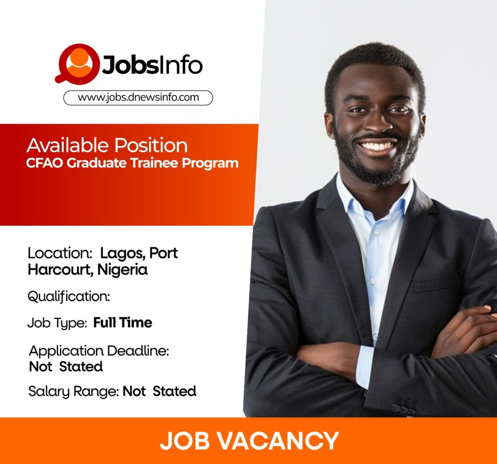 Send your CV via email to aesjobsng@cfao.com. Include the role and location in the subject line (e.g., Graduate Trainee – Lagos or Graduate Trainee – Port Harcourt).