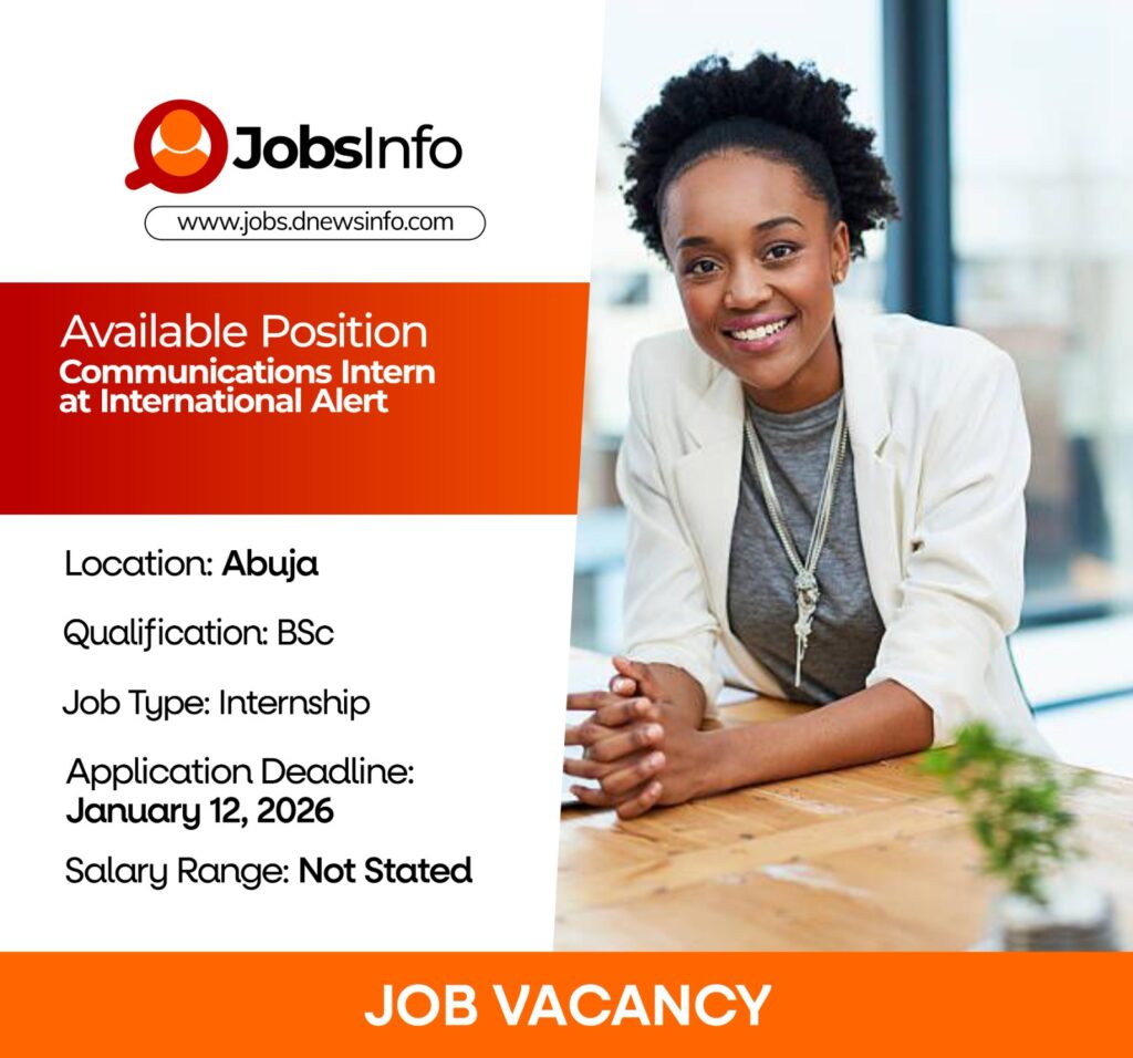 International Alert is seeking a Communications Intern to support its communications and visibility efforts in Abuja. The successful candidate will contribute to content creation, digital engagement, and media support while working in a dynamic and mission-driven environment.