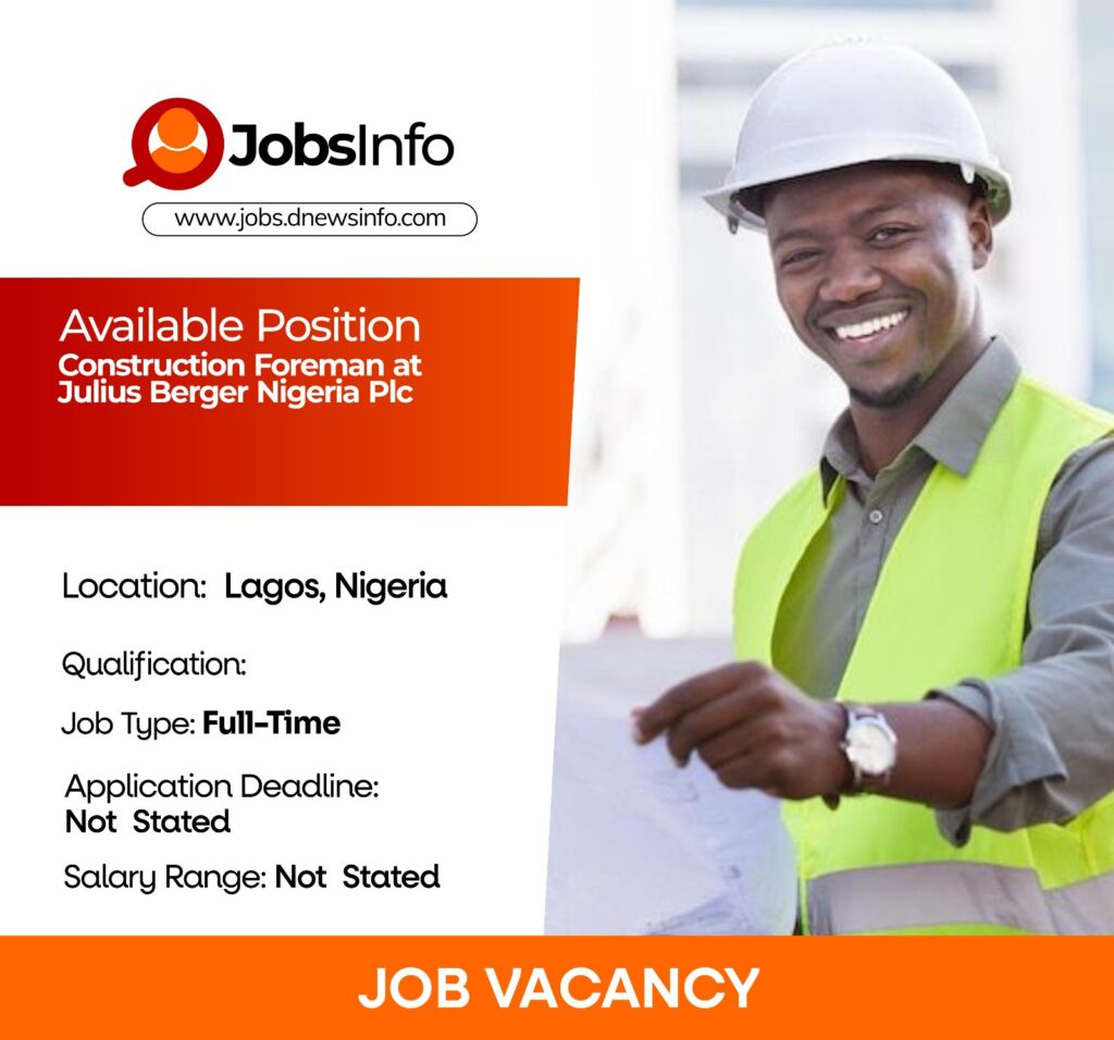 Julius Berger is seeking an experienced Construction Foreman to oversee building construction projects in Lagos. The role involves supervising site activities, coordinating teams, and ensuring that construction work is executed efficiently and in line with technical specifications.