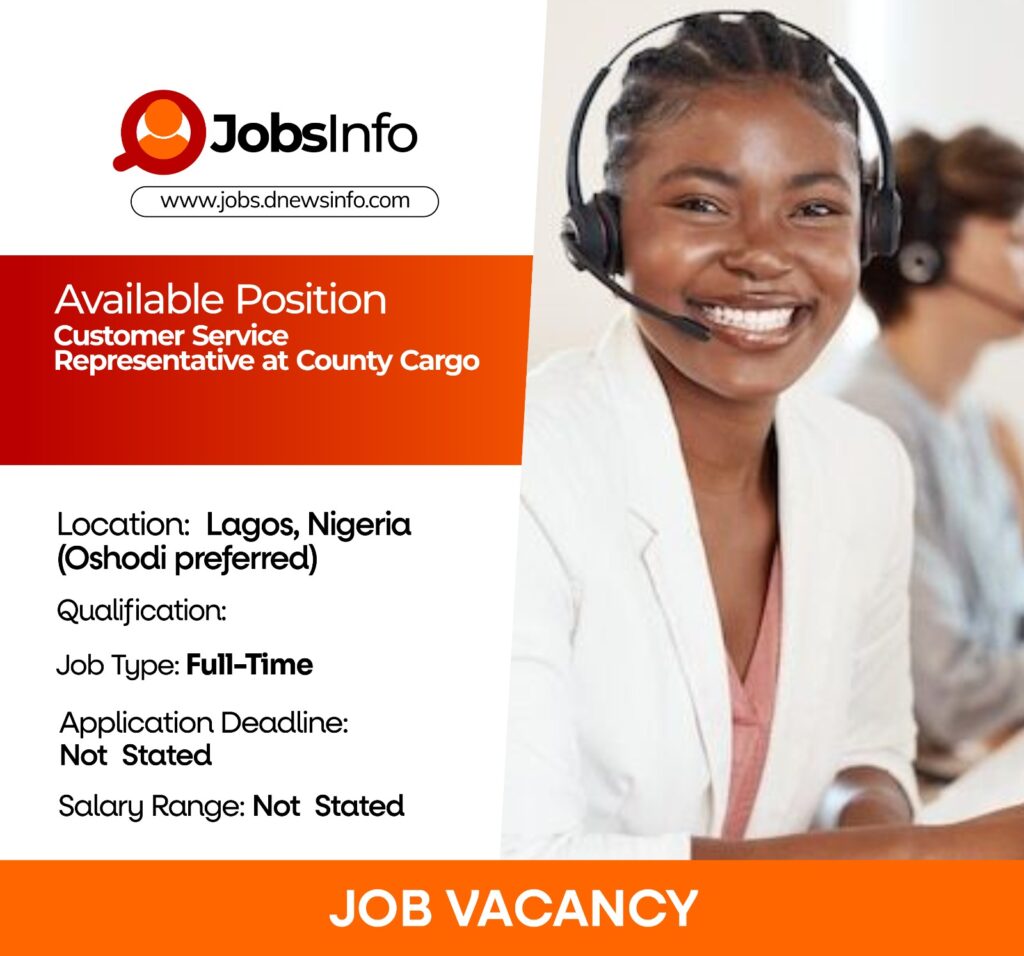 County Cargo is seeking a proactive and detail-oriented Customer Service Representative to join its team in Lagos. The role involves managing customer interactions, handling data, and supporting digital operations to ensure smooth service delivery.