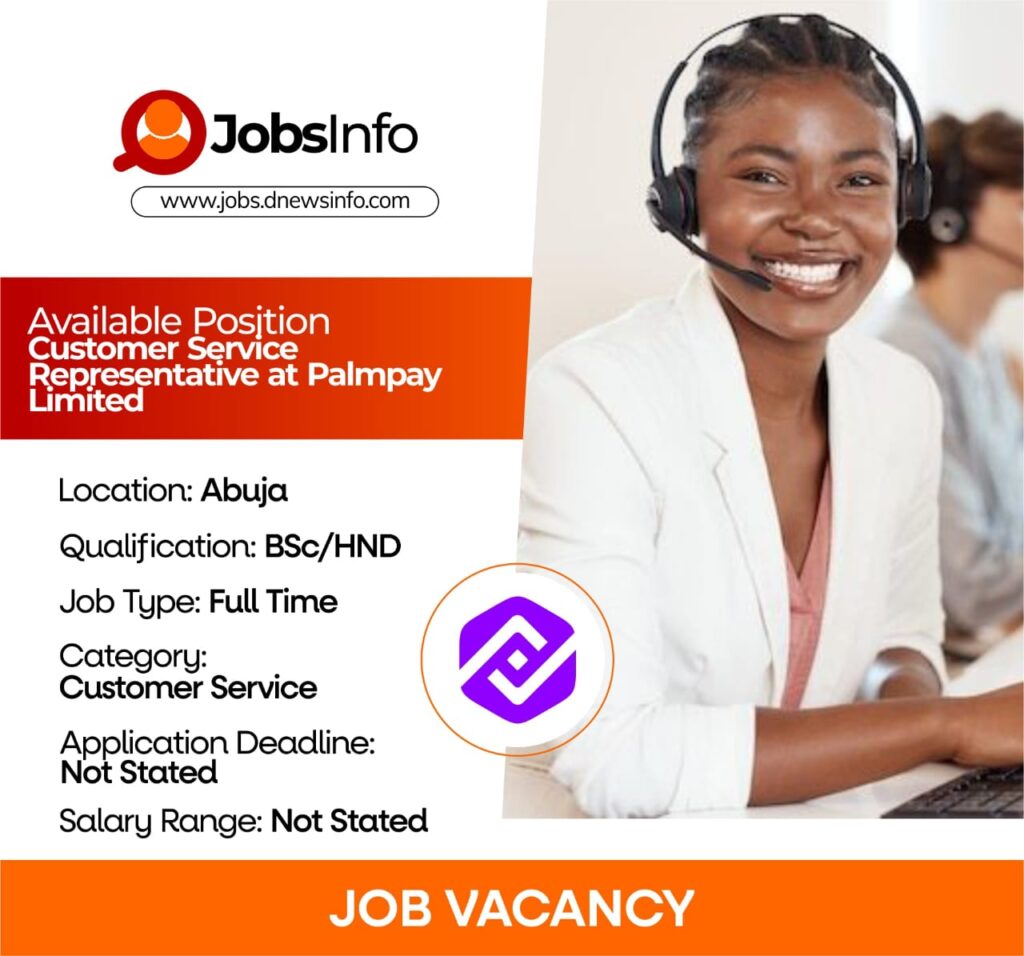PalmPay seeks a dedicated Customer Service Representative to join its Abuja office. The ideal candidate will act as an Agent Support Officer, ensuring high customer satisfaction by managing inquiries, resolving technical and operational issues, and providing exceptional service to walk-in agents.
