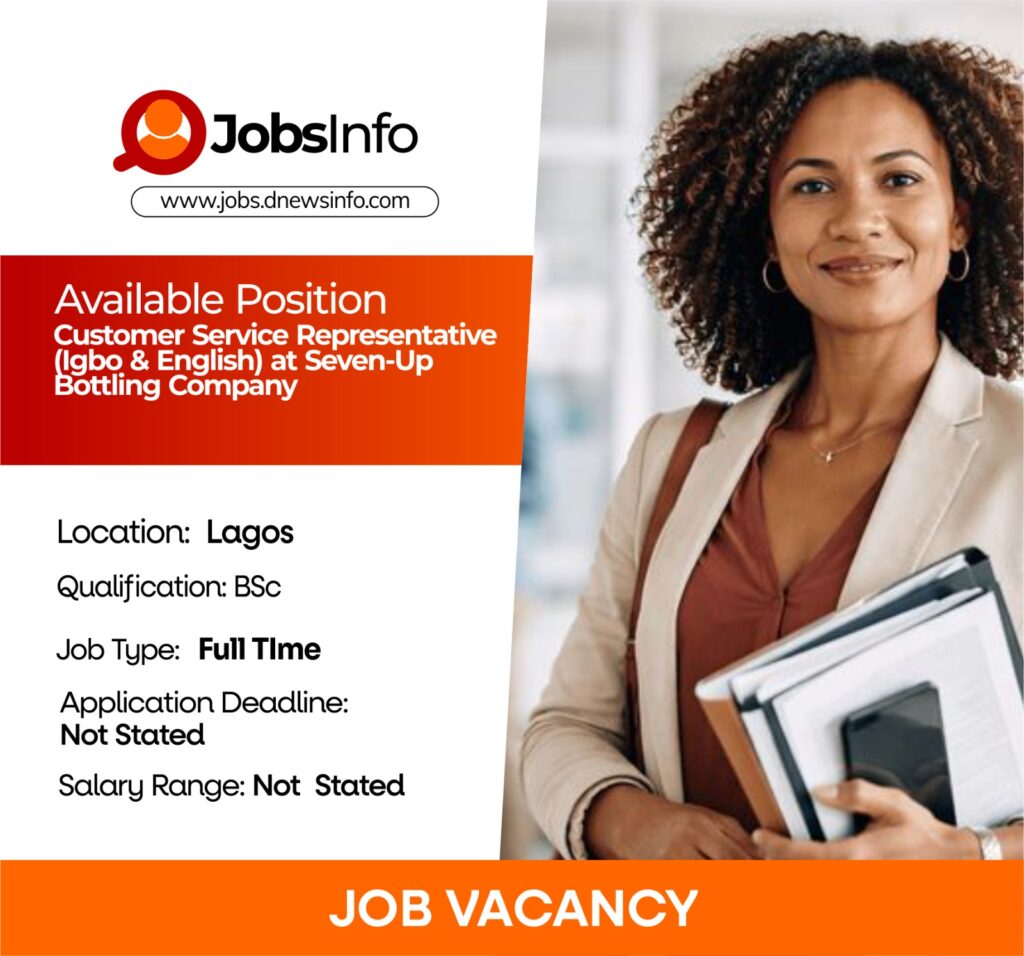Seven-Up Bottling Company is currently recruiting a Customer Service Representative (Igbo & English) to support customer engagement and service operations at its Lagos office.