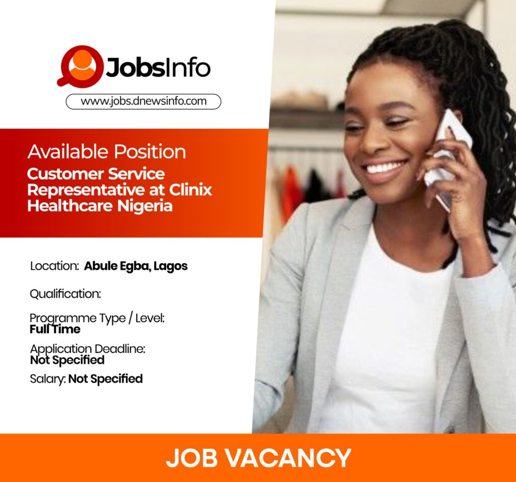Clinix Healthcare Nigeria is recruiting Customer Service Representatives to join its front desk and patient support team. This role is ideal for individuals passionate about patient care, effective communication, and delivering excellent service in a healthcare environment.