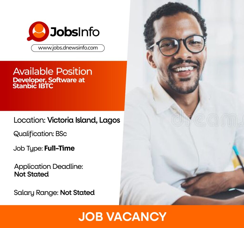 Stanbic IBTC is currently hiring a Software Developer to join its team in Victoria Island, Lagos.
