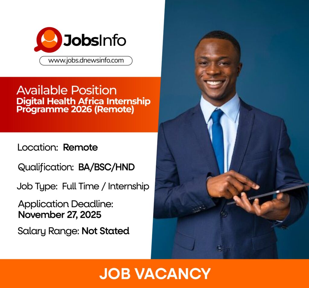 The Digital Health Africa Internship Program offers young professionals the opportunity to contribute to Africa’s digital health transformation. Interns will work remotely with DHA teams across media, digital innovation, research, youth engagement, and policy documentation.