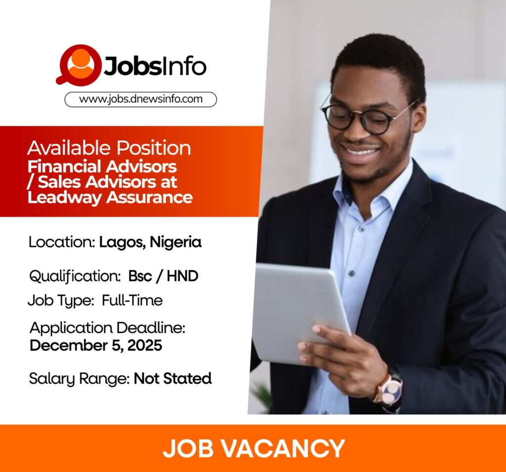 Leadway Assurance is seeking smart and highly intelligent Financial Advisors / Sales Advisors to join its growing team in Lagos State.