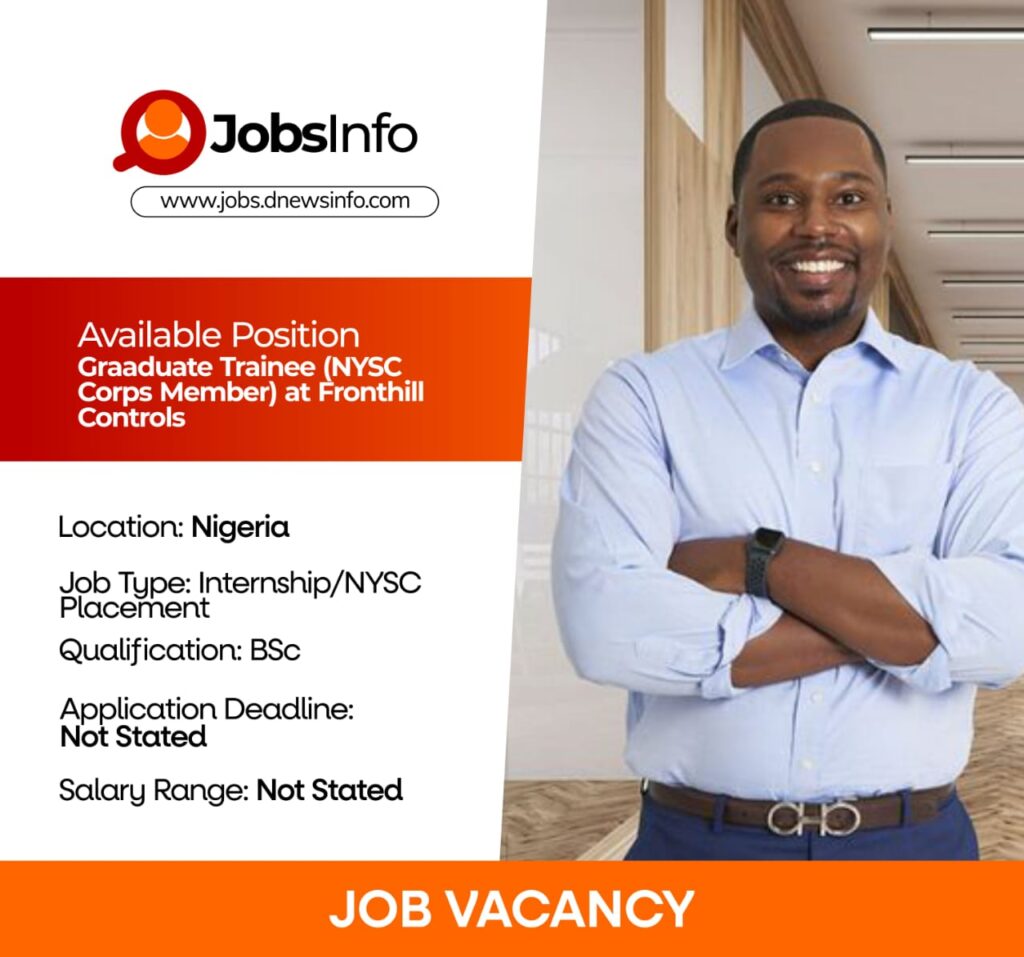 Fronthill Controls is currently recruiting Graduate Trainees (NYSC Corps Members) to support its engineering and technical operations.