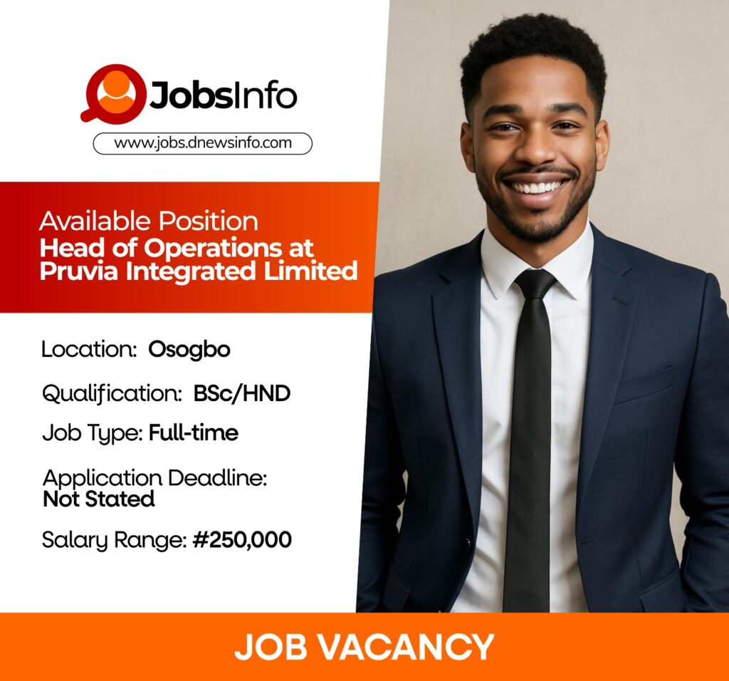 Pruvia Integrated Limited is seeking a Head of Operations to oversee and manage operational processes within the automobile division.