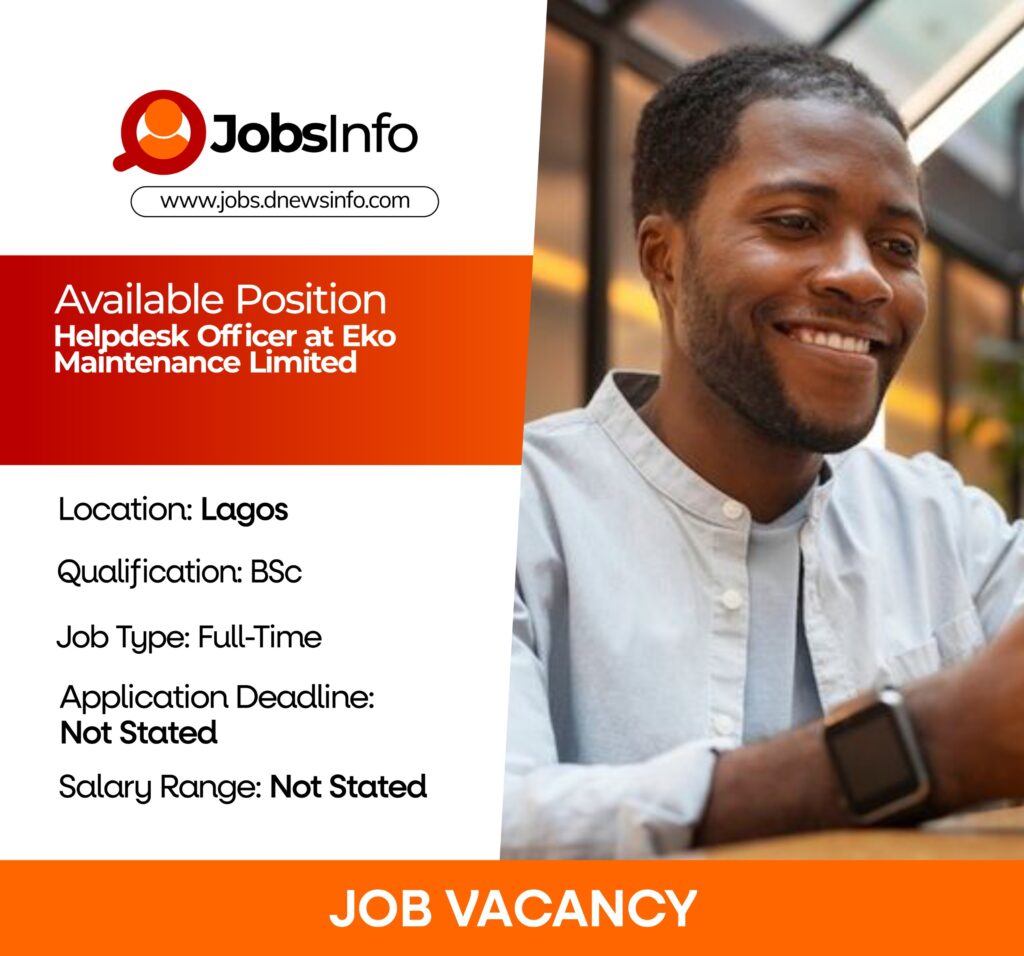 Eko Maintenance Limited is seeking a competent and customer-focused Helpdesk Officer to manage helpdesk operations, coordinate service requests, and provide effective technical and administrative support. The ideal candidate will serve as a key communication link between clients, internal teams, and service providers, ensuring timely issue resolution and high service standards.