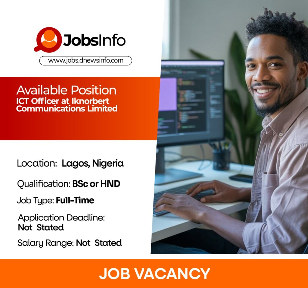 Interested and qualified candidates should send their CV and a brief cover letter to careers@iknorbert.com. Use “APPLICATION FOR ICT OFFICER” as the subject of the email.