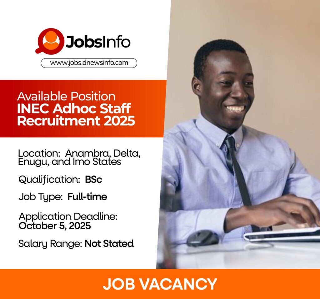 INEC invites applications from suitably qualified candidates for its 2025 Adhoc Staff Recruitment across Anambra, Delta, Enugu, and Imo States.