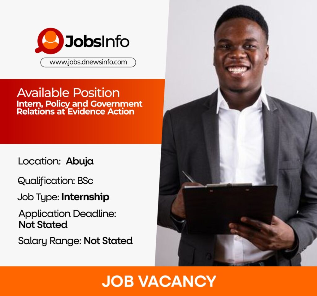 Evidence Action is currently hiring for the position of Intern, Policy and Government Relations in Abuja.