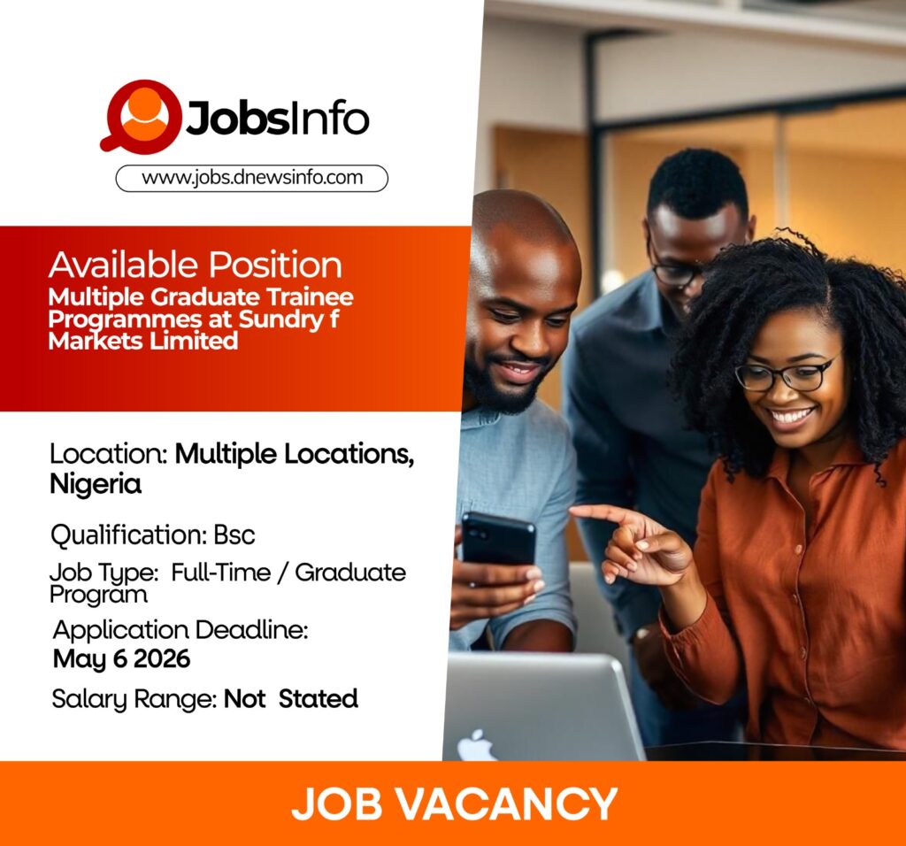 Sundry Markets Limited is recruiting for multiple Graduate Trainee Programmes as part of its expansion strategy. These programmes are designed to develop young professionals into future leaders within the retail industry.
