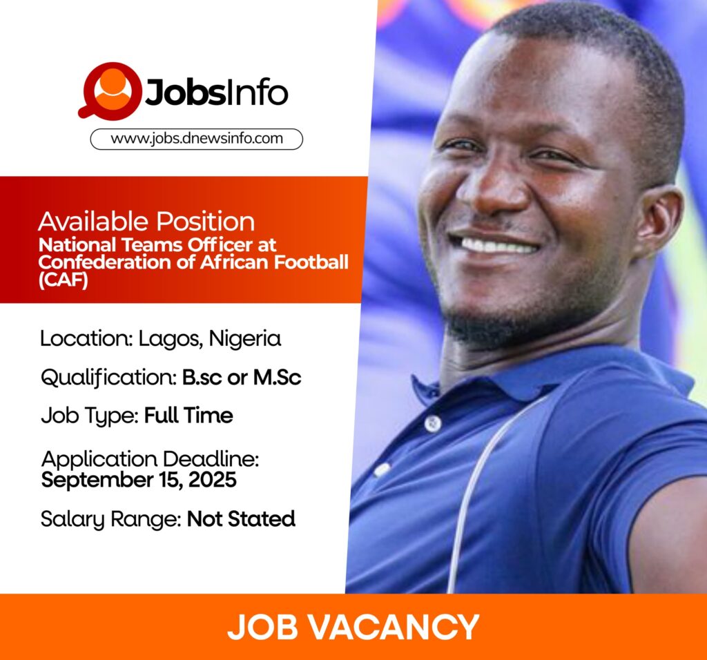 CAF is inviting applications from qualified candidates for the role of National Teams Officer. The role involves assisting in the management of national team competitions, supporting tournament operations, and ensuring effective communication with national associations.