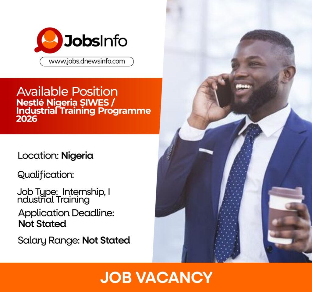 Nestlé Nigeria is inviting applications from eligible undergraduate students for its 2026 SIWES / Industrial Training Programme. The programme provides students with hands-on industrial experience relevant to their course of study, supporting the requirements of the Students Industrial Work Experience Scheme (SIWES).