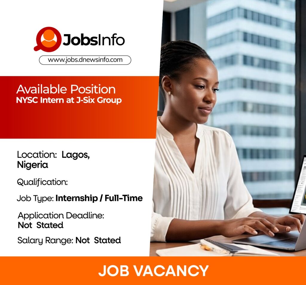 J-Six Group is seeking NYSC Corps Members to join its team across multiple locations in Lagos. Selected candidates will gain hands-on experience by working in different departments, contributing to daily operations while building valuable professional skills.