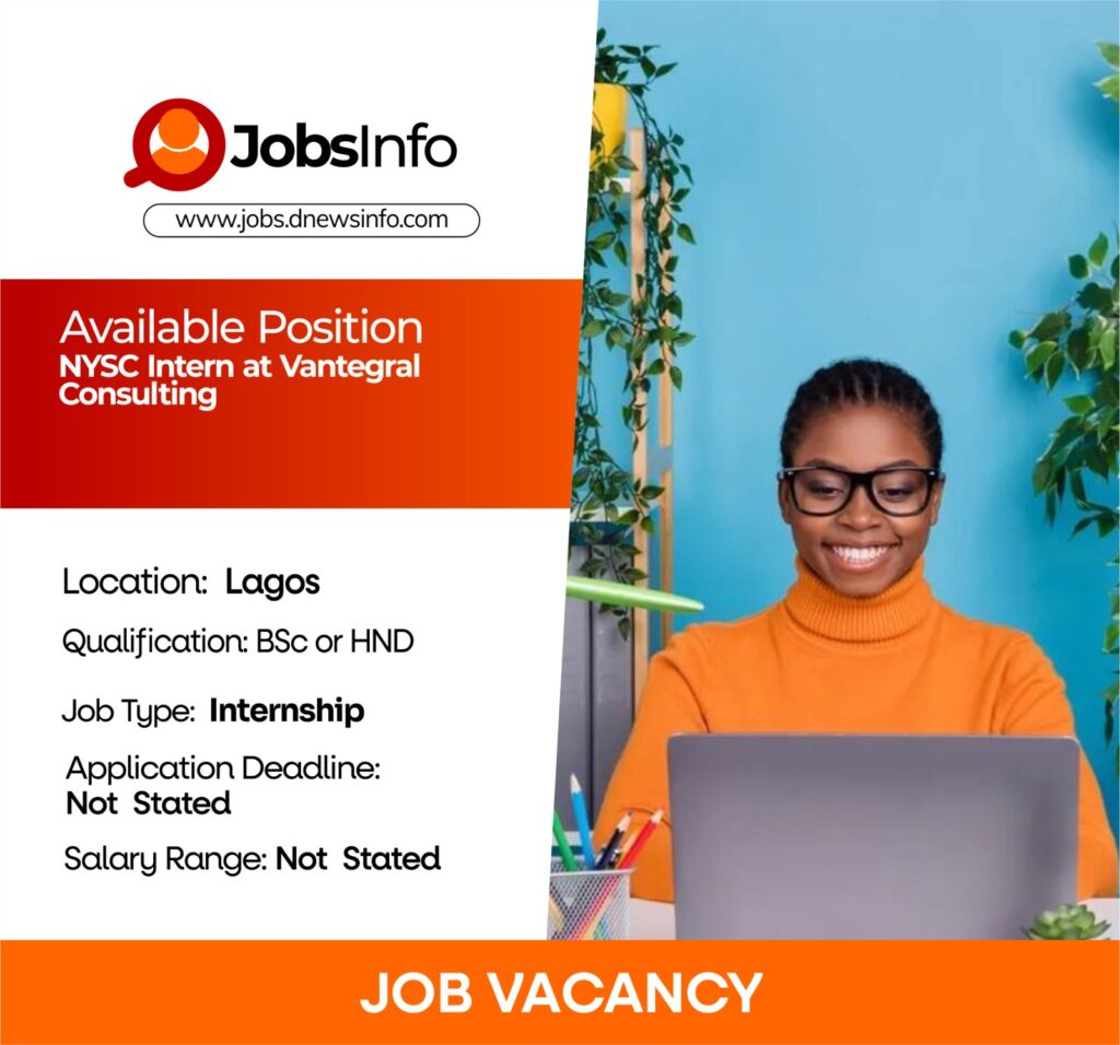 Vantegral Consulting is currently recruiting a NYSC Intern to join its team in Lekki, Lagos State.