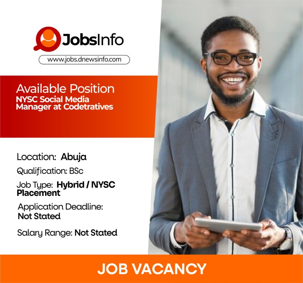 Codetratives is currently seeking a creative NYSC Corper to join its team as a Social Media Manager.