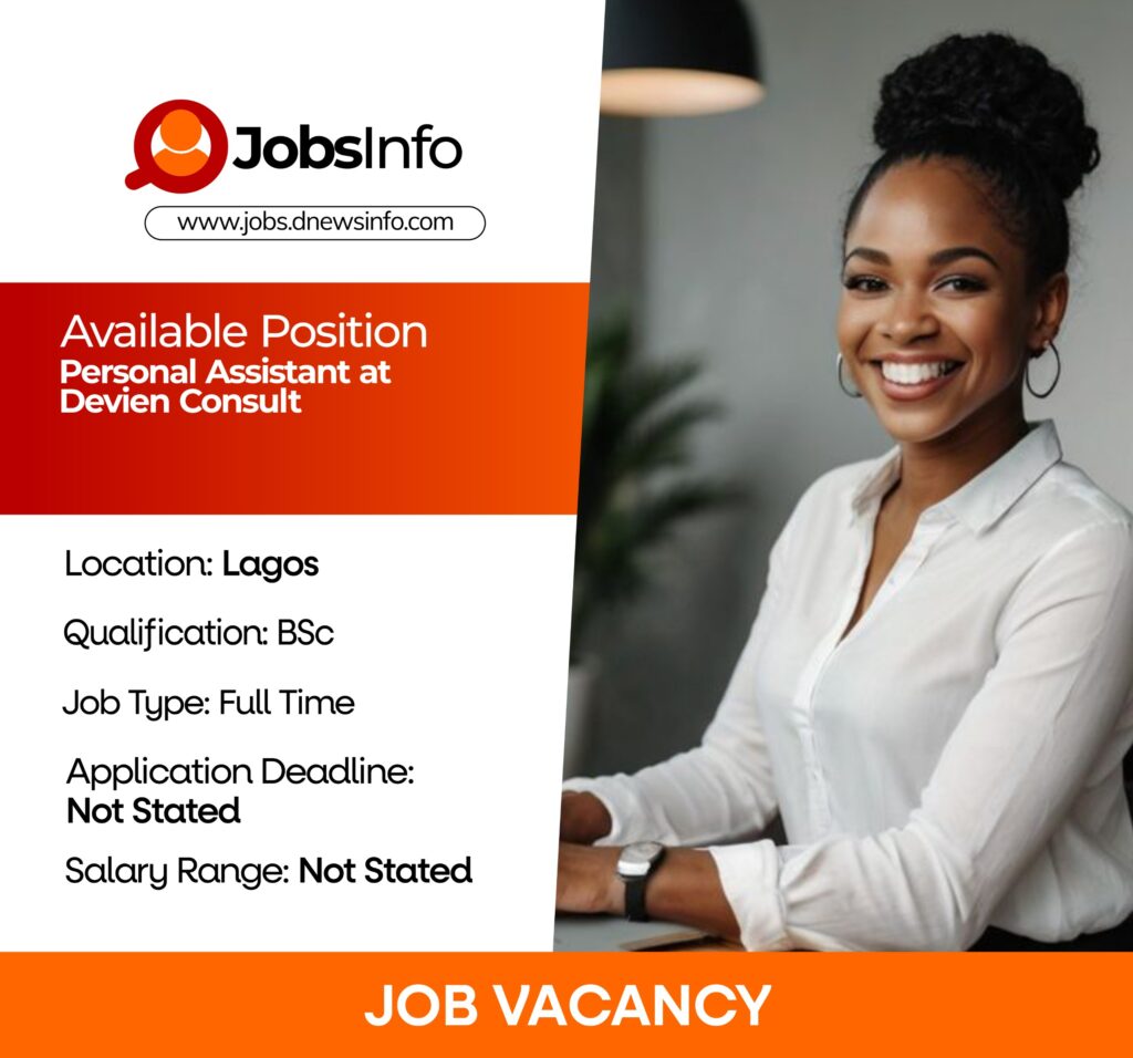 Devien Consult is seeking a highly organized and reliable Personal Assistant to provide administrative and operational support. The ideal candidate will assist with daily tasks, scheduling, coordination, and communication, ensuring smooth workflow and effective time management.