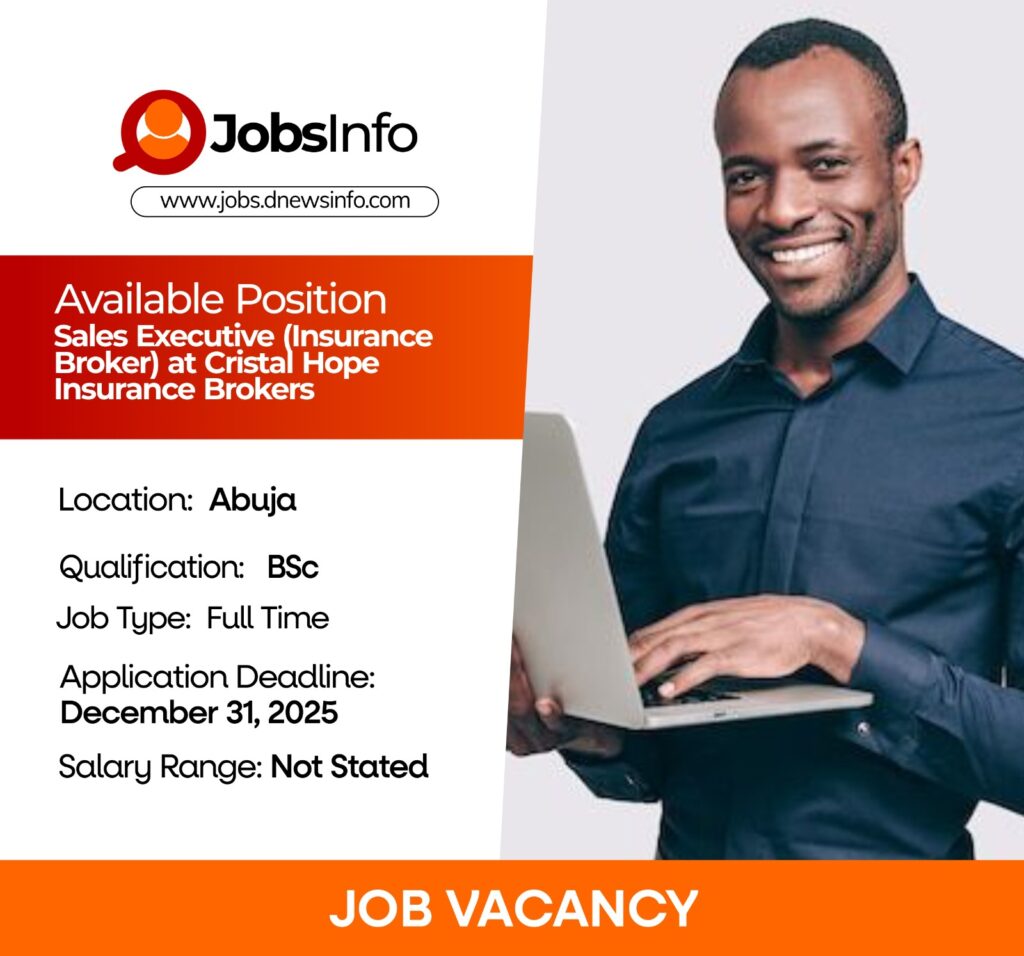 Cristal Hope Insurance Brokers is seeking a goal-driven and articulate Sales Executive (Insurance Broker) to drive business growth through client acquisition, excellent advisory support, and efficient management of insurance policies.