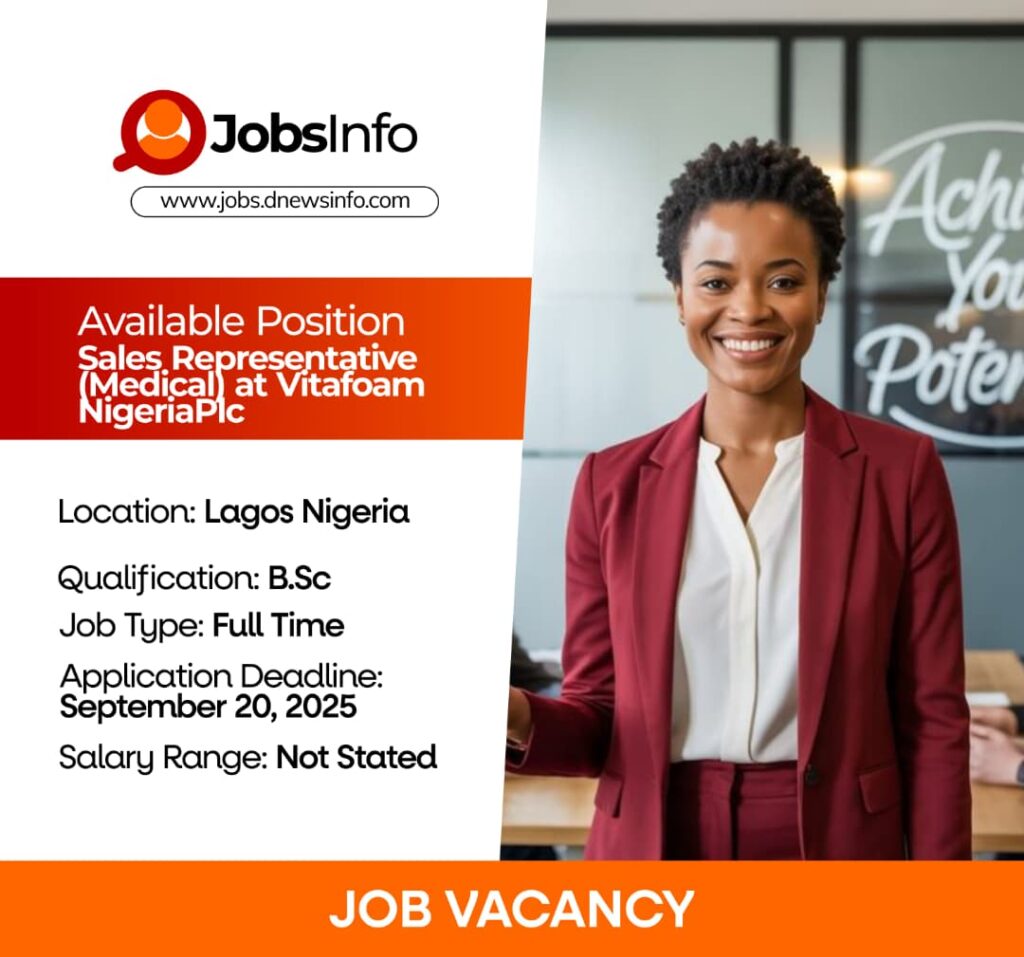 Vitafoam Nigeria Plc is seeking a Medical Sales Representative to promote and sell its range of medical products within the healthcare sector. The ideal candidate will be responsible for developing business opportunities, expanding market share, and building strong client relationships in the assigned territory.