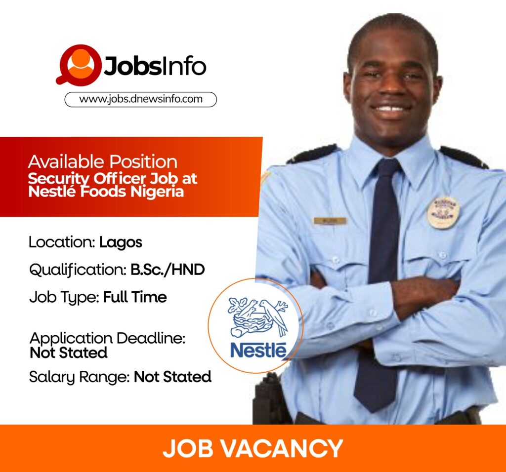 Nestlé Nigeria is seeking a Security Officer to join its team. The successful candidate will be responsible for implementing security best practices, safeguarding staff, clients, products, and assets, and ensuring a secure operational environment in line with Nestlé Group Security and corporate policies.
