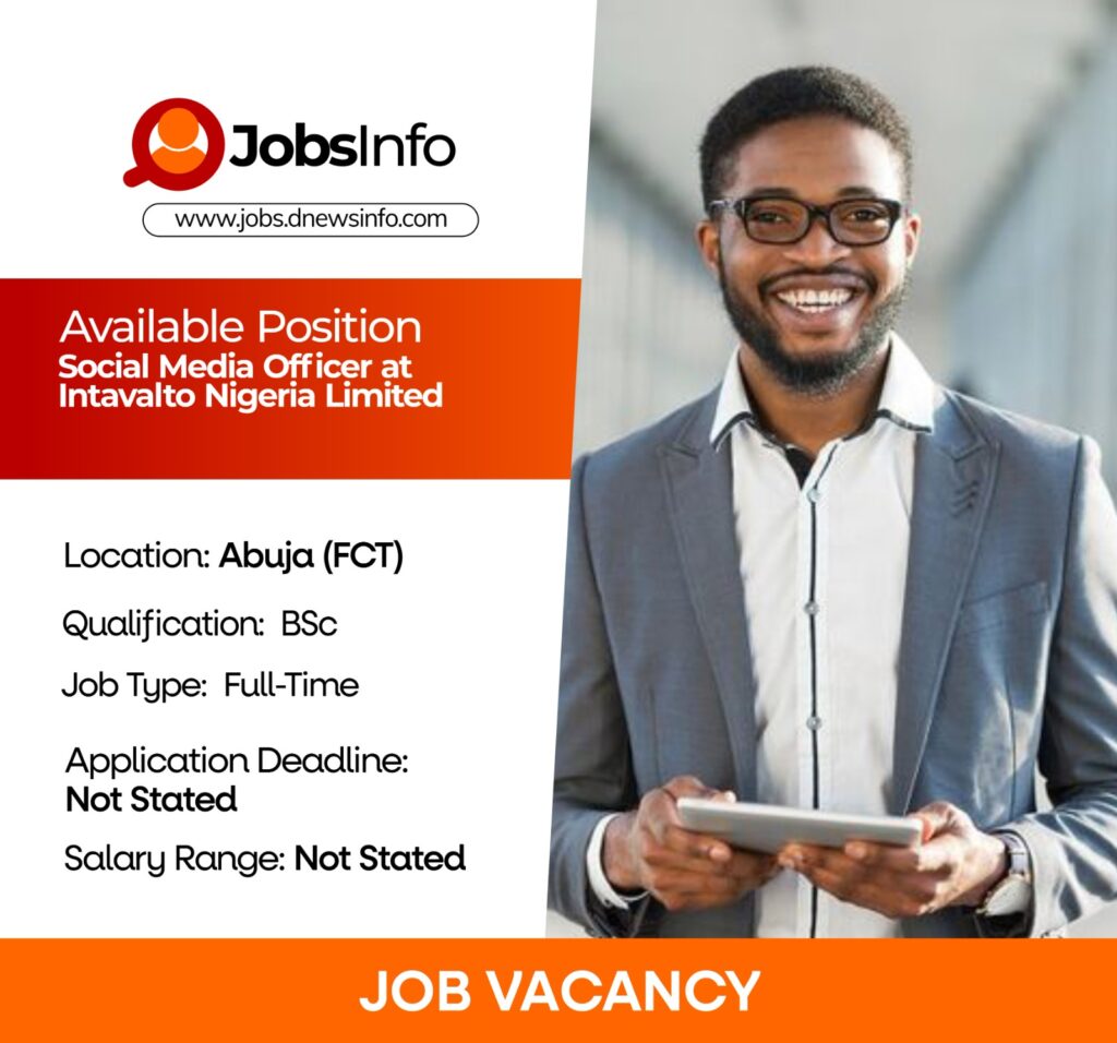 Intavalto Nigeria Limited is seeking a creative and motivated Social Media Officer to support its digital marketing and online engagement efforts. The role is ideal for early-career professionals and NYSC Corps Members looking to build hands-on experience in social media management.