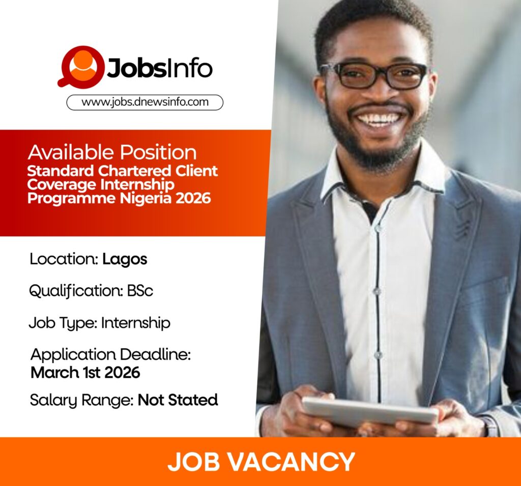 Standard Chartered Nigeria is inviting applications for its Client Coverage Internship Programme 2026, designed to develop high-potential students into future banking professionals.