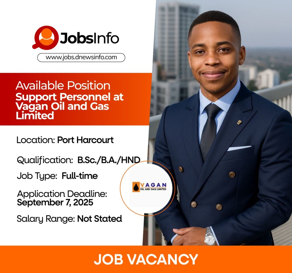 Vagan Oil and Gas is seeking a Pipeline Surveillance Support Personnel to join its team in Rivers State. The successful candidate will be responsible for collating and analyzing data, facilitating information sharing, and supporting interventions against crude oil theft-related activities. The role also involves database management, incident investigation, and use of advanced IT and geomatic tools to support security and operational efficiency.