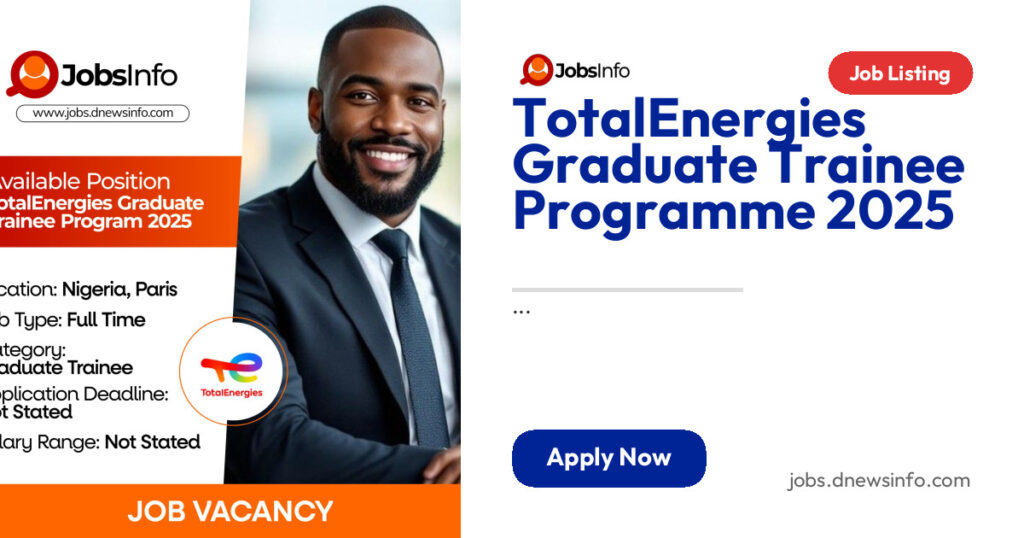 TotalEnergies invites applications from young, talented Nigerian graduates for its 2025 Young Graduate Program—an 18-month career development opportunity that includes international work exposure in Paris or across Africa.