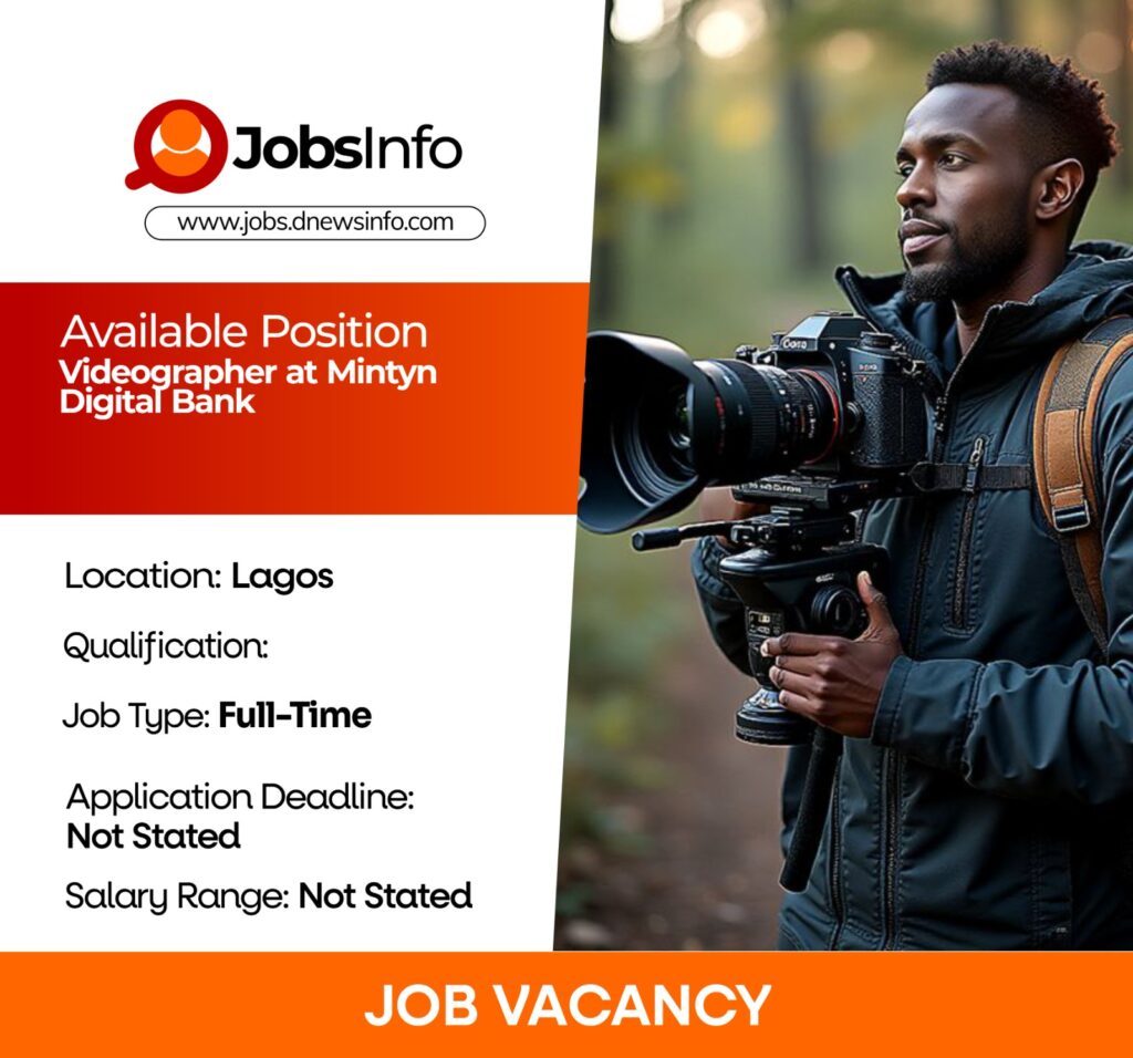 Mintyn Digital Bank is seeking a highly creative and skilled Videographer to join its growing digital team. This role is ideal for a visual storyteller who can handle video shooting, editing, and motion graphics to create engaging content that aligns with the brand’s identity.