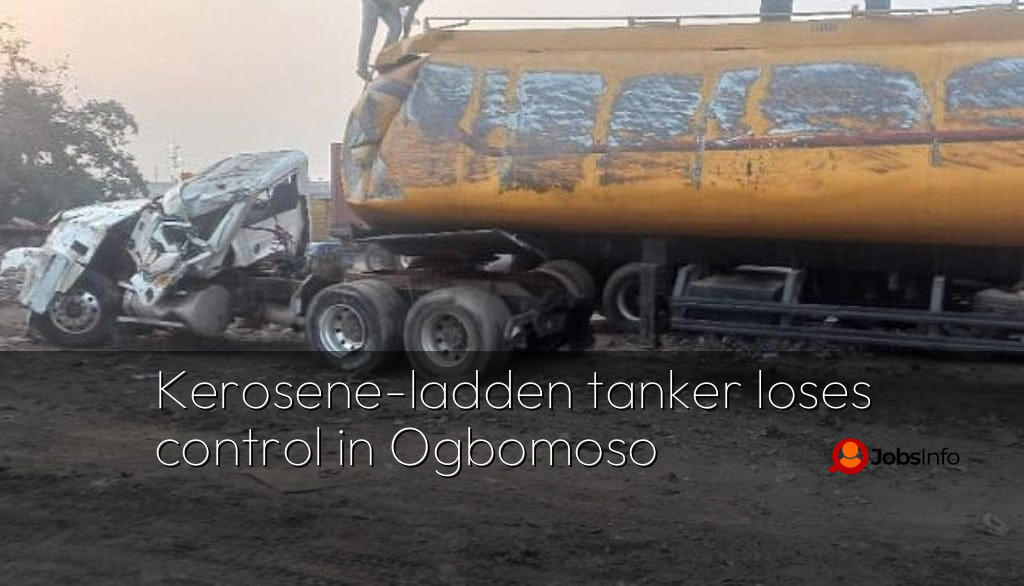 OGBOMOSHO, OYO STATE – A tanker carrying 45,000 litres of kerosene has lost control in Ogbomoso, Oyo State.